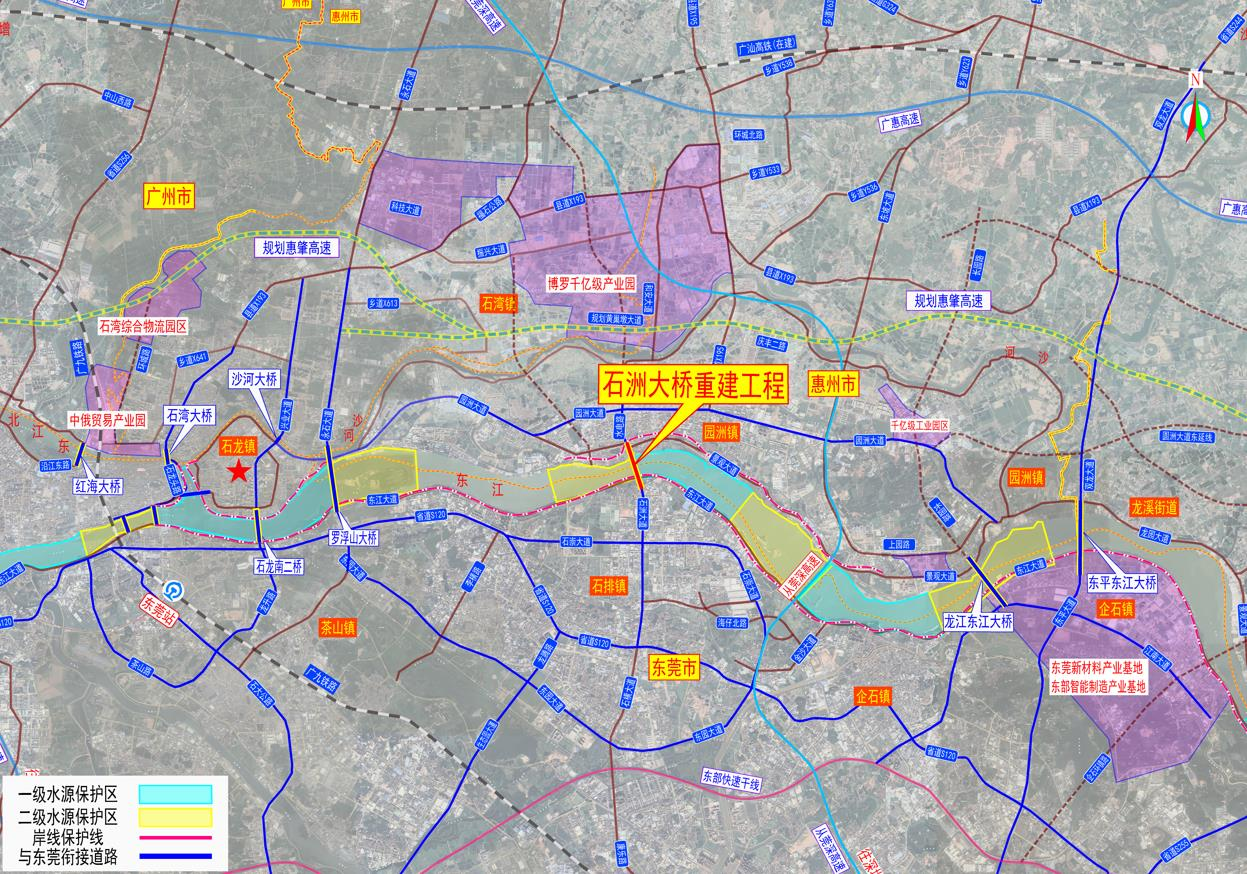 建設(shè)地點(diǎn):本項(xiàng)目位于惠州市園洲鎮(zhèn)與東莞市石排鎮(zhèn)交界位置,橫跨東江水道,總體呈南北走向,北側(cè)接順橋北路,延伸至博羅千億產(chǎn)業(yè)園;南側(cè)接順東莞石洲大道,延伸至東莞松山湖,連接惠州市博羅縣園洲鎮(zhèn)-東莞市石排鎮(zhèn),為兩地核心產(chǎn)業(yè)園區(qū)連接通道。