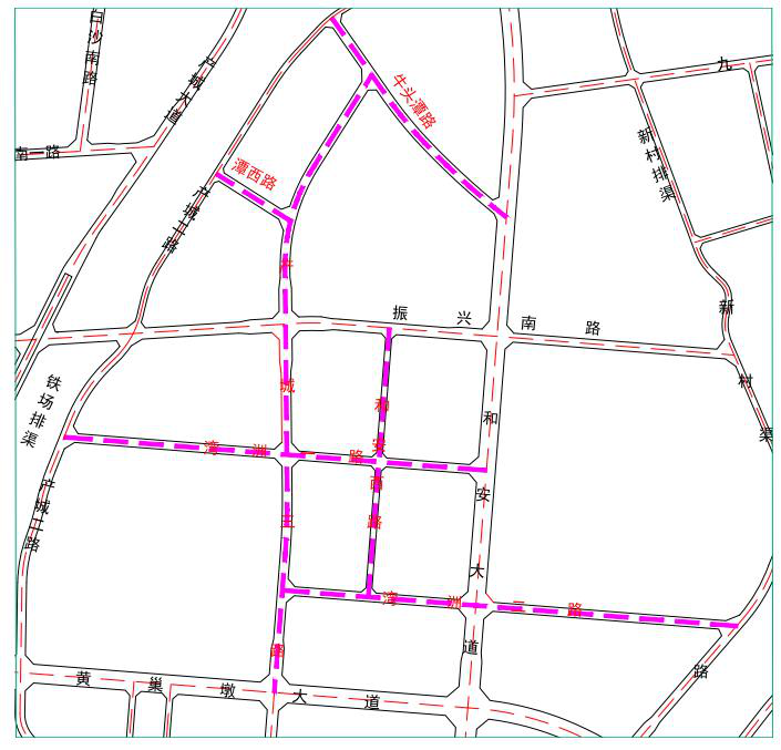 1、牛頭潭路:道路等級為城市次干路,道路紅線長715m 紅線寬度為26m,雙向4 車道,設(shè)計車速為40km/h,混凝土路面結(jié)構(gòu)。