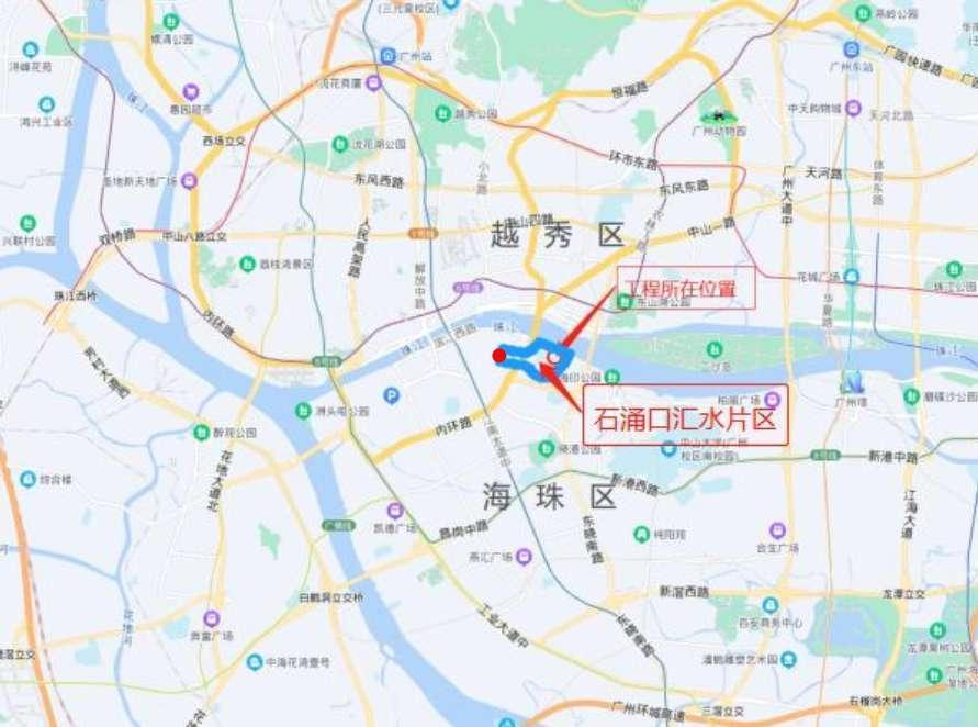 3、建設(shè)地點與范圍:項目位于廣州市海珠區(qū)濱江中路石涌口流域范圍,項目位置如下圖: