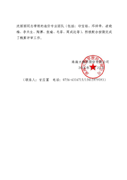 “貴司高度重視,按照區(qū)投資項目審核中心的總體部署,在橫琴駐場開展評審工作,參與審核人員加班加點,短期內出具了概算審核報告書,為預算編審及招標工作的順利完成提供了可靠保障……”近日,廣州市國際工程咨詢公司收到珠海大橫琴股份有限公司發(fā)來的一封感謝信,信中對我司尤其是我司的造價專業(yè)團隊表示了衷心的感謝。