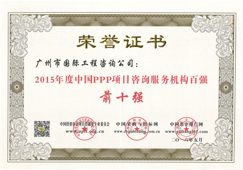 2015年度中國PPP項目咨詢服務(wù)機構(gòu)百強(前十強...