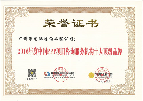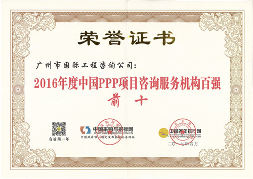 2016年度中國PPP項目咨詢服務(wù)機構(gòu)十大頂級品...