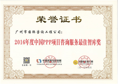 2016年度中國PPP項目咨詢服務(wù)最佳智庫獎